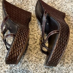 These gorgeous shoes will make you feel like you stepped of the fashion streets of Milan! The 4” heels provide the lift you need to rise to any occasion! The shoes say 8 but I am a 7.5 and they fit me fine.