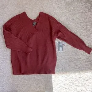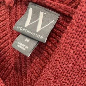 Pretty and soft v neck sweater by Worthington. Color is a rustish maroon. Pit to pit 20”, shoulder to hem 24”. Comes from a smoke free pet free home.