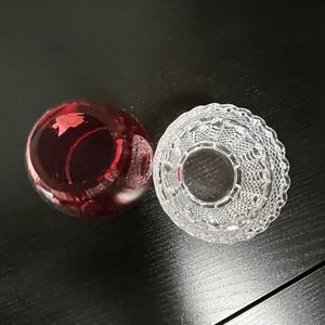 Vintage Fenton Red Hand Painted Fairy Lamp w/ Diamond Cut Base.