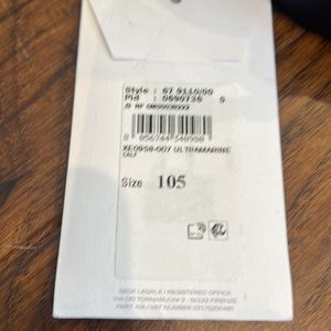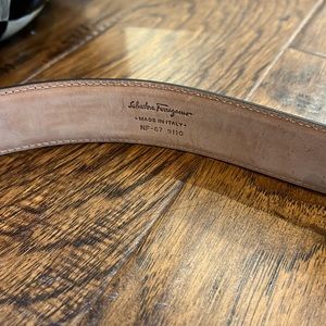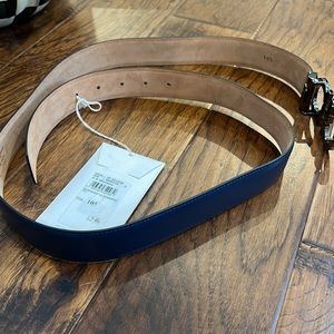 Salvatore Ferragamo Belt. Navy leather with chrome color hardware. Navy Marble belt buckle