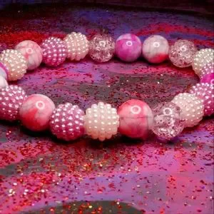 This adorable pink bracelet is simply irresistible! Its delicate hue adds a touch of sweetness to any look. this is brand new and it's handmade . SOLD AS IS IN PHOTOS