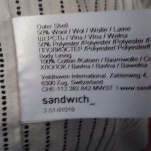 ladies coat by Sandwich 50% wool/50% polyester body is lined in cotton, sleeves lined in polyester
