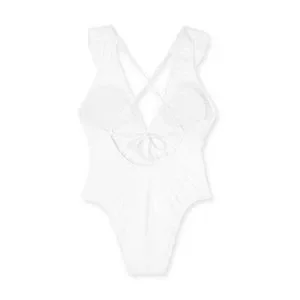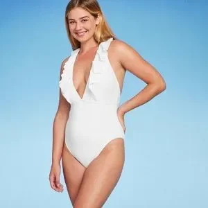 Women's Plunge Flounce Neckline One Piece Swimsuit - Shade & Shore White L
