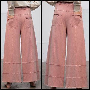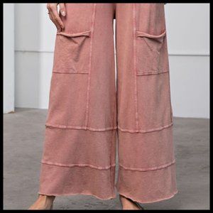 EASEL "Perfect Cargo" Terry Knit Mineral Washed Flared Leg Pants Raw Hem & Seams