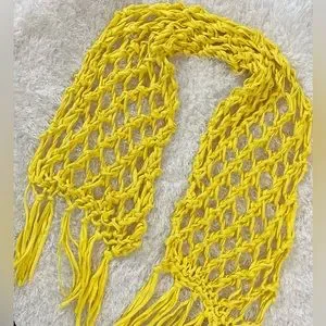 This beautiful lace scarf is made out of Jersey t-shirt yarn. 98% cotton 2% elastane. It’s so light and breezy. Perfect for year round wear in any weather! This scarf would make the perfect addition to any fall outfit! This scarf is a handmade item. Please be kind when making offers! All reasonable offers accepted! Happy poshing!