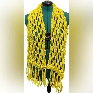 Handmade Yellow Fall Cotton Boho Knit Chunky Lace Scarf Wrap with Tassels