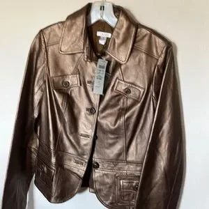 New with tags stunning bronze leather jacket. This is a gorgeous color leather jacket