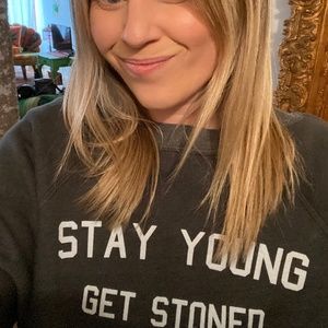 HTF Saturday School “Stay Young Get Stoned’” Graphic Print Sweatshirt Gray Sz S