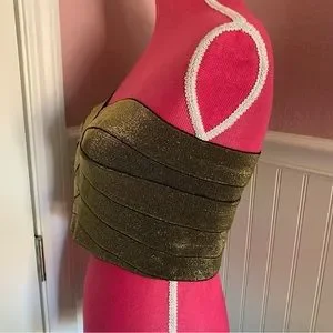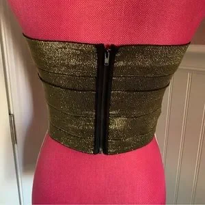 👗Gold and Black Disco Costume Bodycon Strapless Crop Top size Large