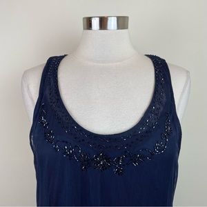 American Eagle Outfitters Navy Blue Beaded Sheer Floral Dress Women XL