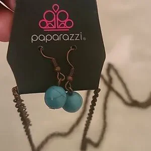 Paparazzi turquoise and copper, necklace with earrings, never worn