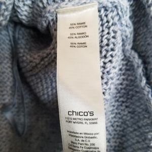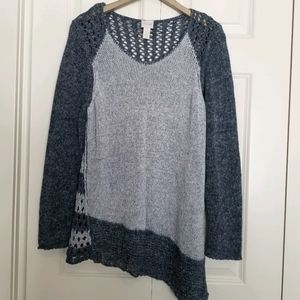 Chico's blue crochet asymmetrical hem cotton blend sweater SZ Med