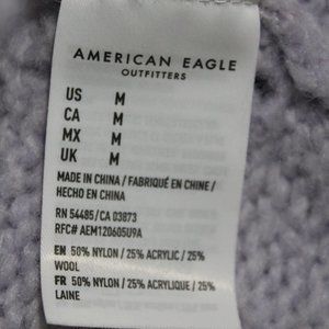 American Eagle jegging fit hooded sweater in size medium. Gently used no flaws condition. Long sleeve, V-neck, ribbed edges, loose oversized fit., Wool blend, Measurements taken flat: Pit to Pit: 23”, Length: 26”. (JN23)
