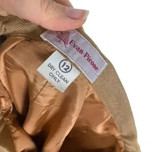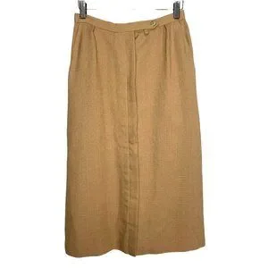 Vintage 70s Evan Picone Tan Button Up Straight Midi Skirt Medium