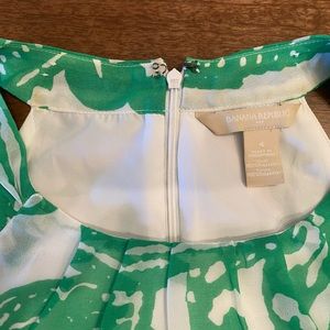 Banana Republic green and white blouse, GUC. PTP 17”. Shell: 100% Polyester. Lining: 100% Polyester. Some yellowing in inside back collar, not visible when worn. See photo.
