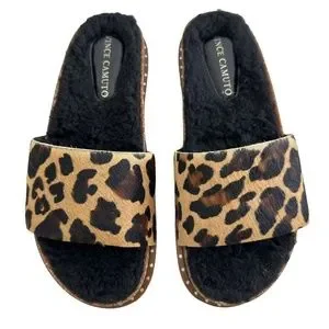 New Vince Camuto Women's Kanadial Slide Sandal Suede calf Hair Faux Fur Slip On