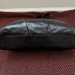 Hobo International Leather Shoulder Bag. Black. 12 inches at opening. 14 inches across bottom. 10 inches deep. Straps are 10 inches.