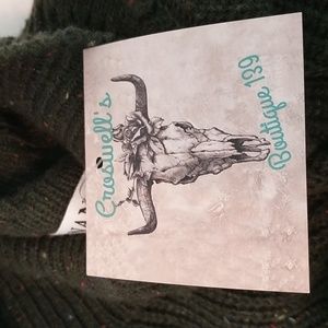 NWT Boutique, Dark green distressed sweater, one side cold shoulder style, tagged as M but is more L/XL. See pics for measurements. Speck detail in fabric.