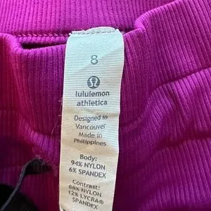 Lightweight, water-resistant Swift fabric to keep you covered on our way to the studio or gym. Stretchy inseam panels give us the freedom to move when we're trying to make getting to class on time a part of our practice. Really good condition other than a little pulling on the inseem panel. Shown in last picture.