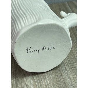 Vintage Sherry Olsen Vase Anthropologie Woodland Bark Tree Stump Butterfly Stands about 6 tall