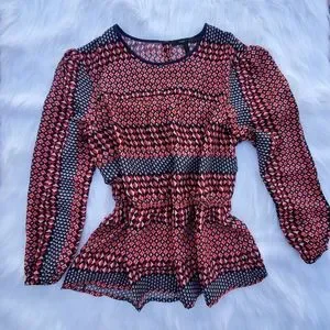 ⭐️2/$25⭐️Blouse Long Sleeve Elastic Waist Geometric Pattern