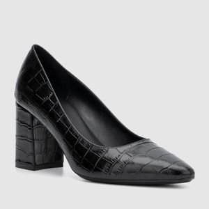 NEW Aquatalia Heels Black Embossed Leather Croc Pattern Size 11 Pumps NWT $395