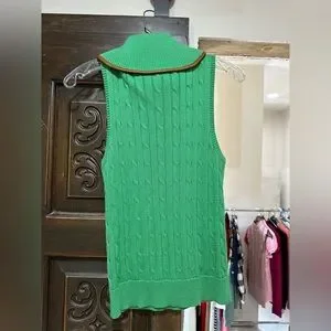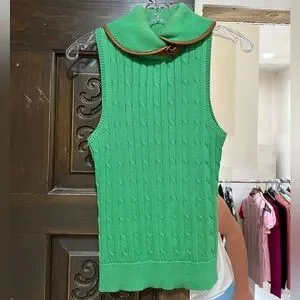 Ralph Lauren sleeveless braid sweater. Leather trim. Size M