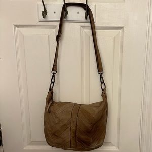 Lucky Brand Taupe/Light Brown Leather Geometric Crossbody professionally cleaned