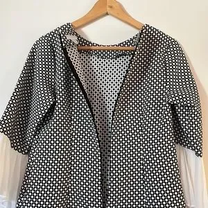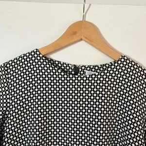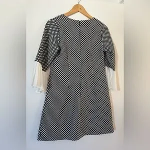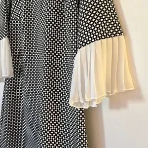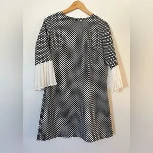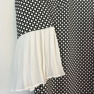 Black and White Mini Dress with Pleated Sleeves. EUC. Zipper and clasp on back. Petite, stretch.