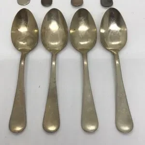 This is a Collection of 8 Small Vintage Spoons. Four are identical, and the others are similar but also are monogrammed. They measure about 5” and are great for sauces, or appetizers etc. good for small hands too!