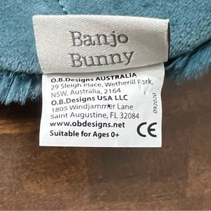 O.B. Designs Banjo Bunny dark teal/blue Plush Lovey Blankie toy Easter NWOT