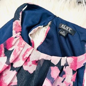 Lightweight chiffon dress perfect for wedding or gender reveal. It has a soft bateau neckline and a flattering waistline full of crystals that makes this gown romantic and feminine. This long dress is a ballgown silhouette and it fully lined for extra coverage and comfort. Brand: SLNY Size: 14