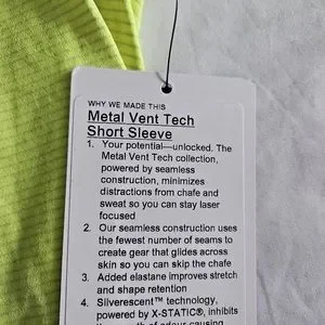 With accents of the Lululemon logo, this limited edition shirt is sure to make you stand out. It is easy to care for and even packable for those on-the-go. The glow in the dark feature adds an extra level of visibility for those early morning or late night workouts. This shirt is available in men's size XSmall.