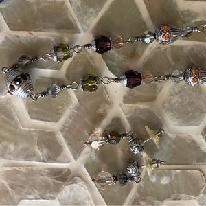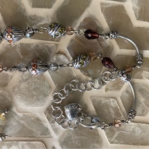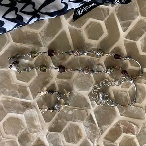 Beautiful Brighton adjustable necklace features gorgeous glass beadwork with matching earrings! Can extend from 7-8.5” and earrings measure just over an inch. Colors include yellow, orange, light green, deep crimson and more.