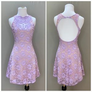Dress the Population One Rad Girl Regina lace dress, size small. Beautiful lavender purple lace with the crochet front and an open back. Preloved great condition. Unstretched bust measures about 17.5 inches across, length about 34 inches. High end and gorgeous!
