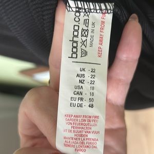 Black short sleeve jumpsuit with slit open back and tie front or back.