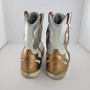 Fornarina x Cowgirls High Top Hidden Wedge Boot Sneakers White Gold Silver 8537