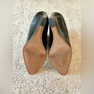 A pair of brand new never worn black leather ankle boots from L. PAOLO. The size is 7 M. These sexy but comfortable boots have pointed toes and 3 3/4” stacked wedge heels. Fine leather construction with a flexible cut-out on each side. Excellent boot for the office, a date night, or any time. Purchased new at Nordstrom’s for $129.95. I no longer have the original box, so they will be shipped in a generic box.