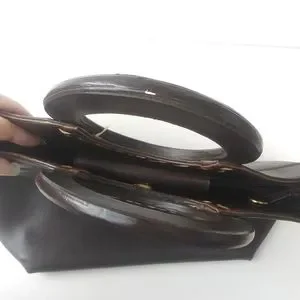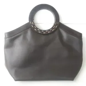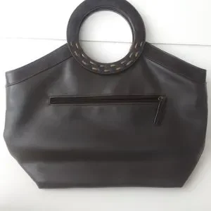 Vintage Liz Claiborne Crazy Horse Round Handle Faux Leather Bag, Dark Brown