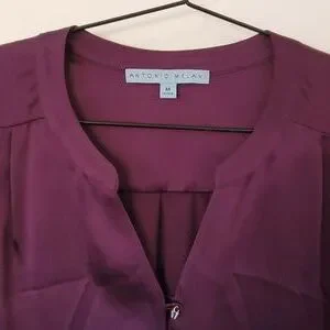 100% Silk Antonio Melani Purple Long Sleeve Blouse