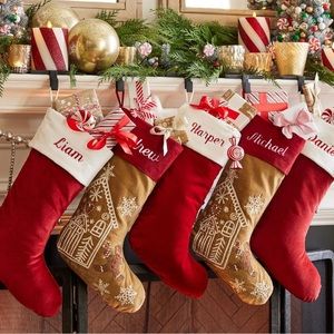 Classic Velvet Stocking, Medium, Red With Ivory Cuff