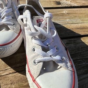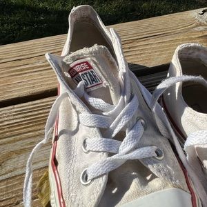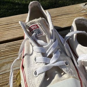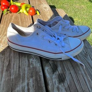 Not new well worn , no breakdown on heel , is a little lifting around canvas and rubber , shown in pictures.