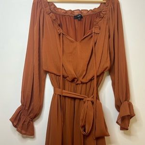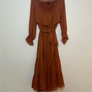 Brunt orange / pumpkin long sleeve tiered maxi dress size medium
