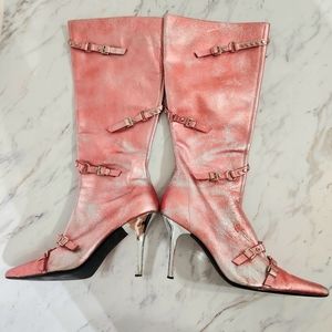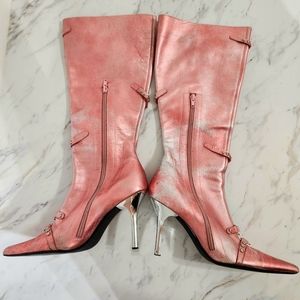 Steve Madden • Pink, Distressed Metallic Faux-Leather Stiletto Boots, size 9