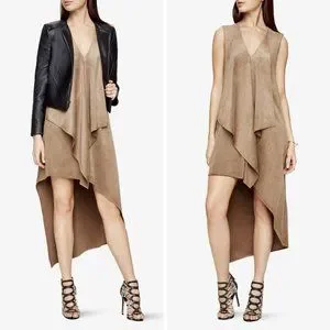 BCBGMAXAZRIA Trar Faux-Suede V-Neck Sleeveless Asymmetrical Women's Dress