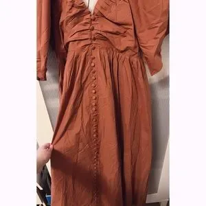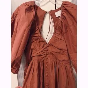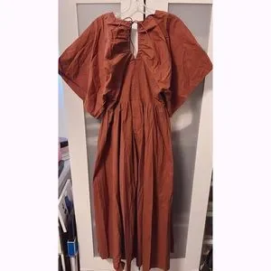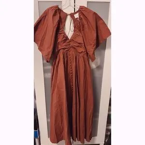 NWT Joslin Sakura Midi Earth Brown Organic Cotton Dress