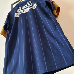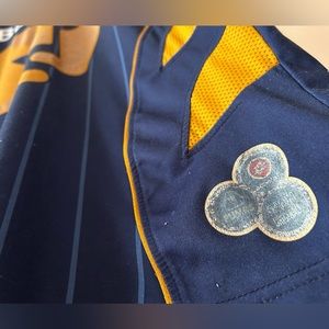 In good used condition, definitely some distress. There’s a faint red mark in the top of the front Puma logo (quite hidden by the writing contained within it, in my opinion!), assorted pulls/bobbles around the jersey, as you’d expect (especially in the lower belly & back), & a few of the Sponsorship hits are quite worn away; no big deal in my opinion, just adds the distressed vintage vibes! Still, please verify all pictures closely for examples!
