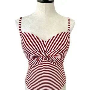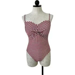 Kona Sol One Piece Striped Twist Swim Suit Dark red and white removable straps for options.