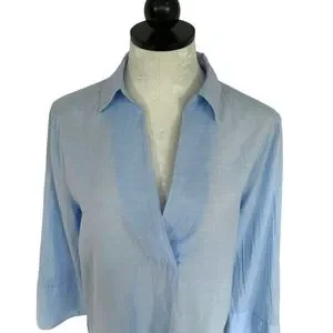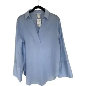 H&M Blouse in woven cotton fabric wide sleeves Collar wrapover V-Neck Size 8