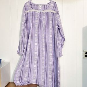 Adonna Purple and White Striped Fleece Long Sleeve Nightgown Women's Size 3X